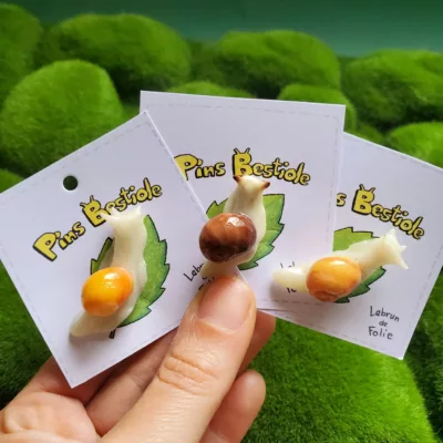 Pins acier inoxydable escargot phosphorescentes réaliste