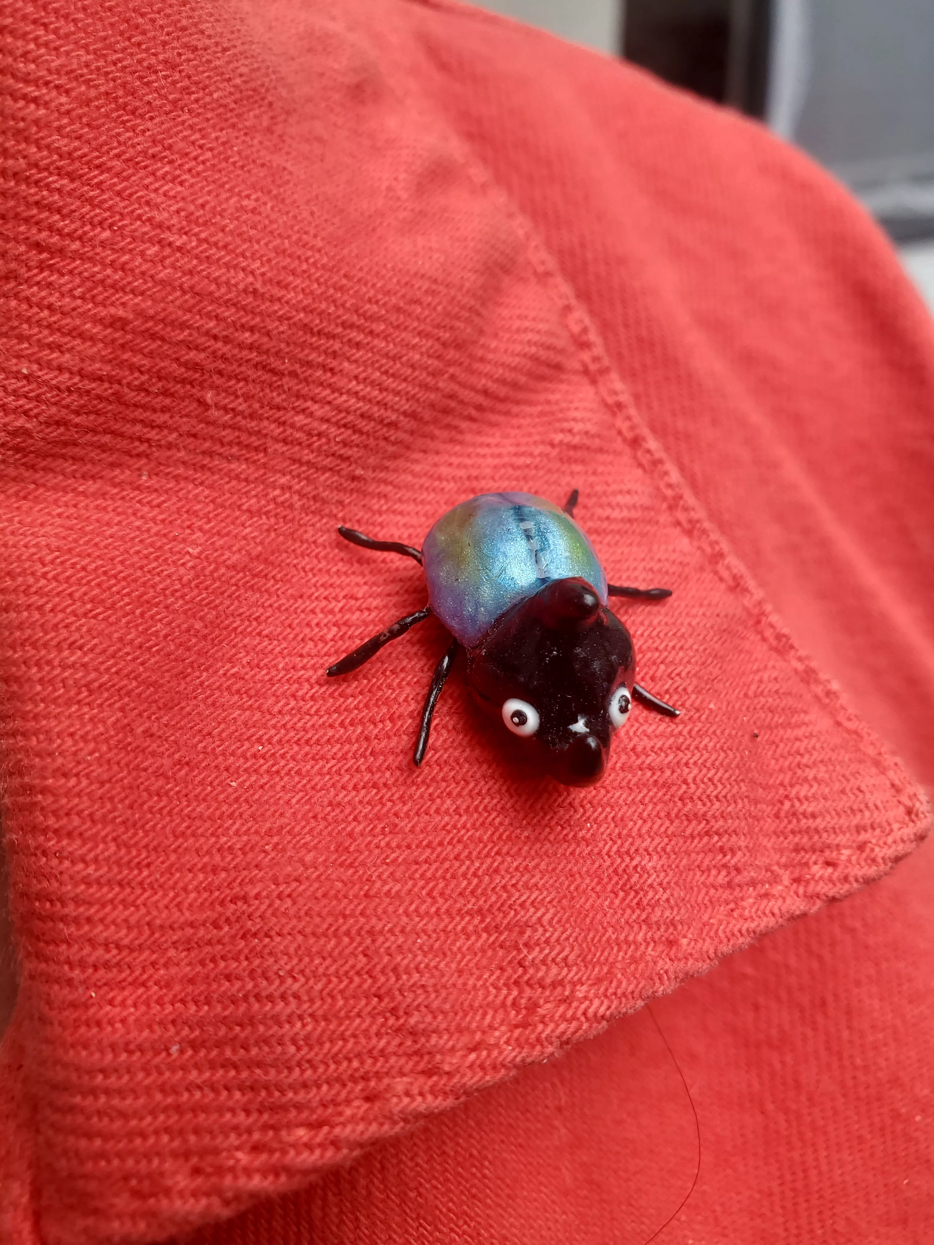 Mes scaracornes sont entièrement fait a la main avec un squelette en fil de fer donc pas de risque de casse. Chacun d’eux à le regard dans votre direction afin de savoir qu’elle sera votre prochaine destination ensemble. Je vous laisse donc choisir celui qui vous accompagnera dans toutes vos aventures 🙂